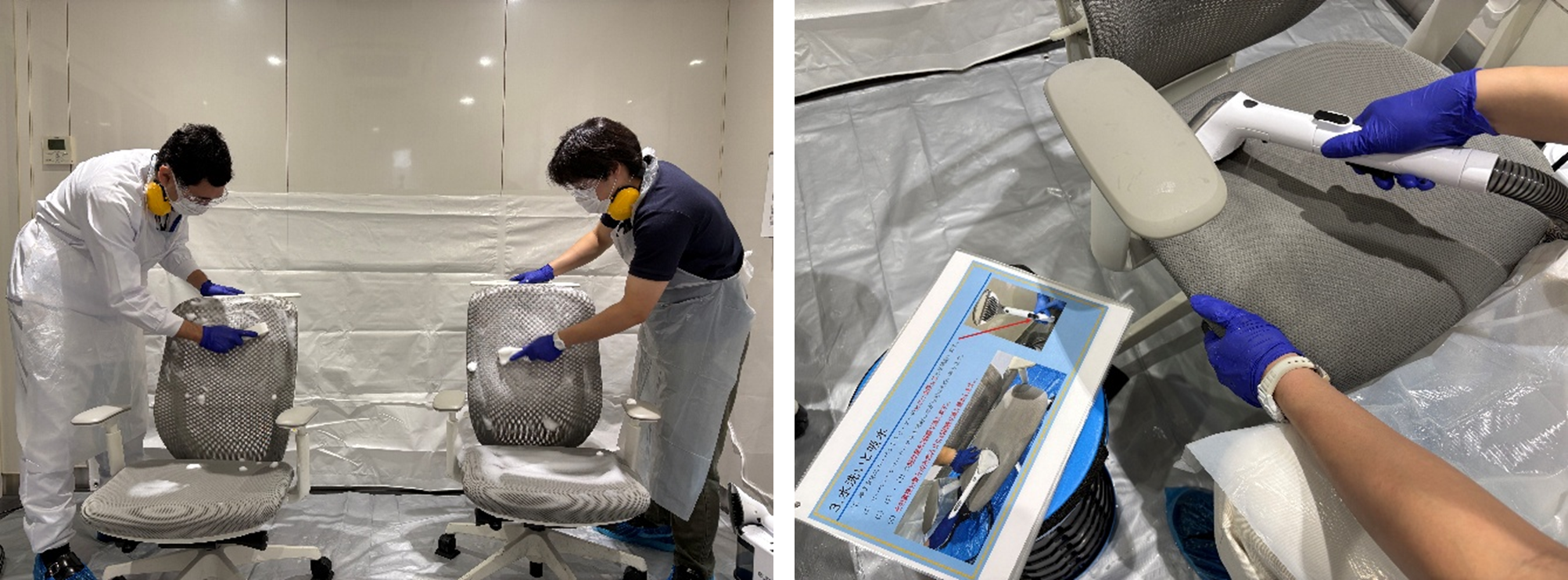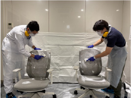 対象となる本社ビル約430脚の椅子を、毎日2脚ずつ、約1年をかけてクリーニングします。