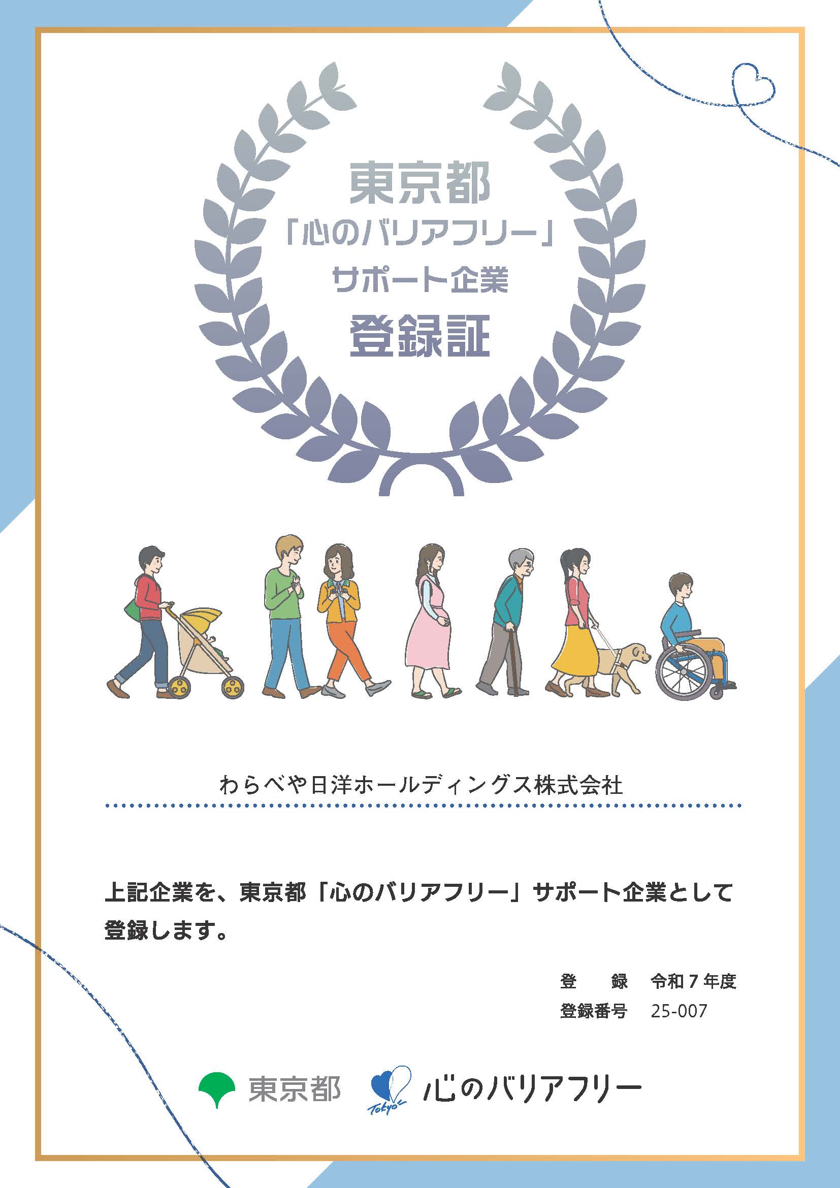 当社は、東京都が推進する「心のバリアフリー」サポート企業制度において、令和7年度第1期に登録されましたので、お知らせいたします。