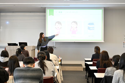 当日は講演に加え、インターンシップを経験した文教大学の学生が、現場での体験談や円滑なコミュニケーションの工夫を発表しました。また、当社社員からは、前向きに取り組む姿勢の大切さや、キャリア形成における多様な経験の価値を紹介しました。